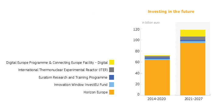 El pasado 2 de mayo la Comisión Europea (CE) presentó su propuesta de presupuesto para el periodo 2021-2027 para la que pretende destinar alrededor de 114.000 millones de euros. Casi el 86% de esta inversión en investigación e innovación, 97.600 millones de euros, será destinada al futuro “9º Programa Marco”, al que ha denominado «Horizon Europe» y que sucederá al actual Horizonte 2020.